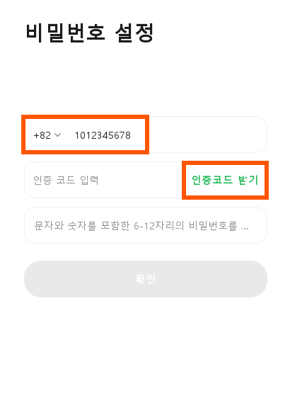 3 국가를 +82 , 번호를 10부터 시작하여 입력해주세요
