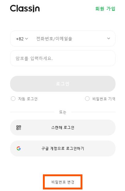 2. 하단의 ‘비밀번호 변경’을 클릭해 주세요.