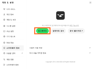 2. [소프트웨어 정보] → [업그레이드] 클릭